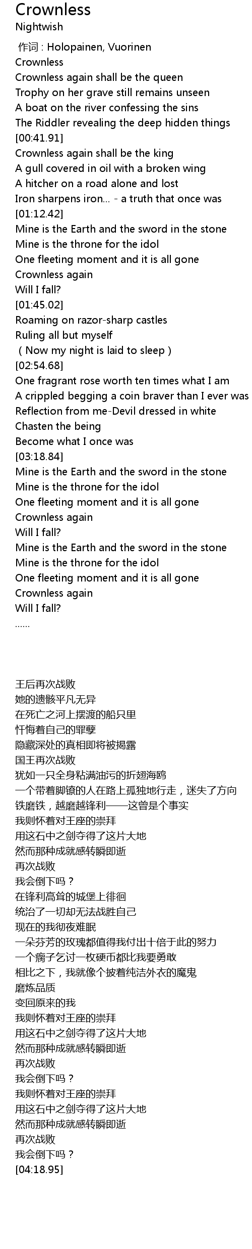 | [04:04.18] | Crownless again |