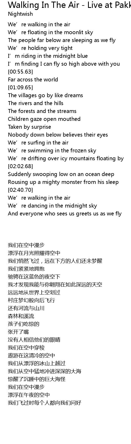 | [01:53.57] | We' re drifting over icy mountains floating by |