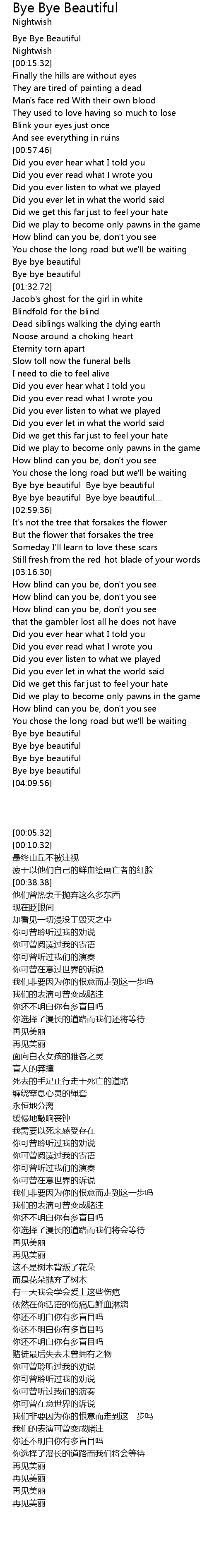 Bye bye beautiful Bye bye beautiful.... |