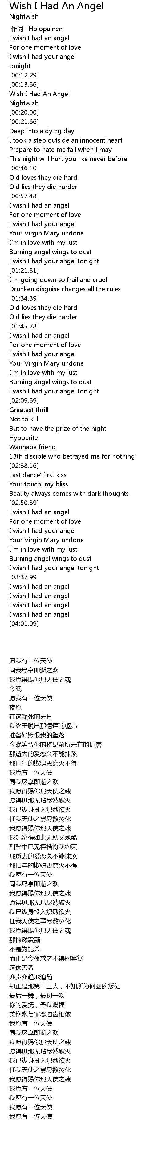 | [00:15.23] | Wish I Had An Angel |