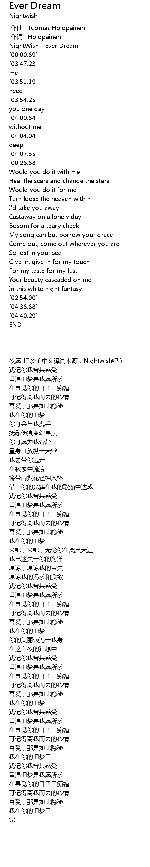 | [00:00.00] | NightWish - Ever Dream |