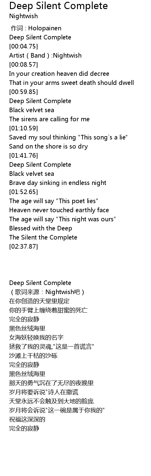 | [00:01.19] | Deep Silent Complete |