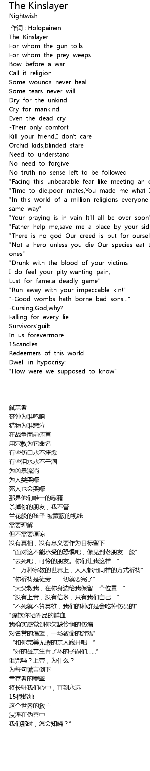 | [00:00.00] | zuò cí : Holopainen |