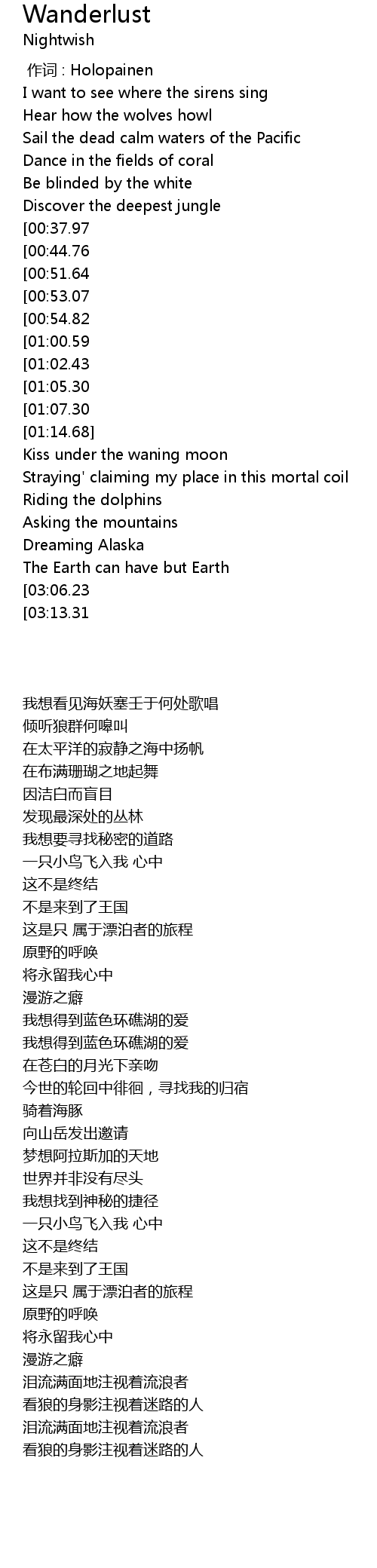 | [00:00.00] | zuò cí : Holopainen |