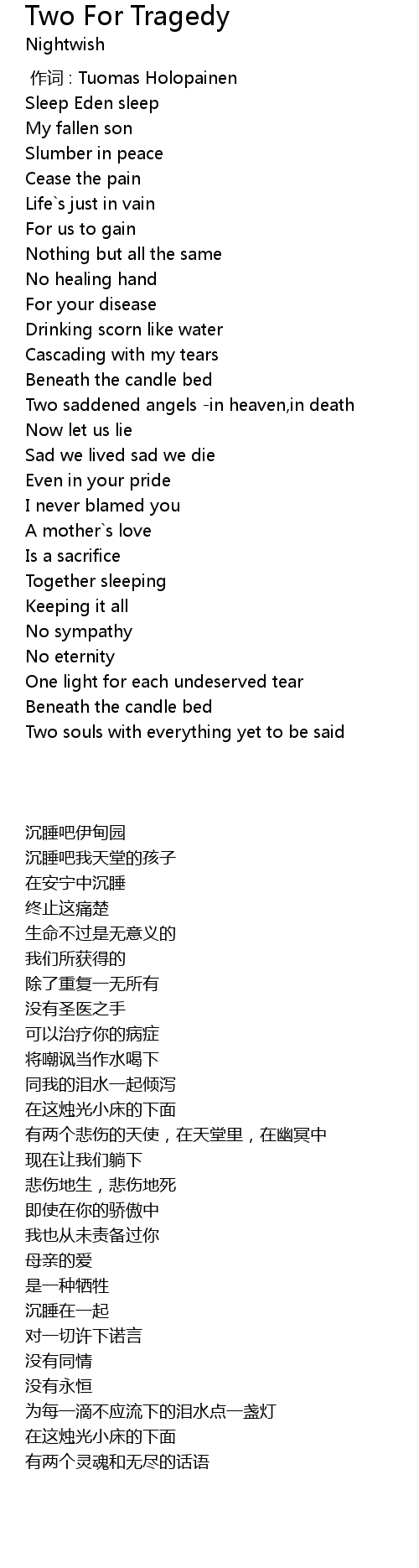 | [00:00.00] | 作词 : Tuomas Holopainen |