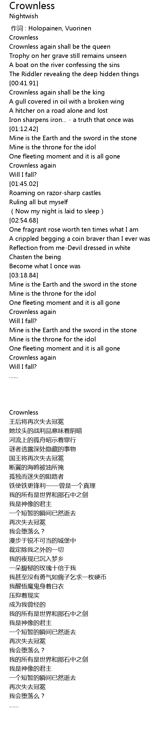 | [03:38.33] | Crownless again |