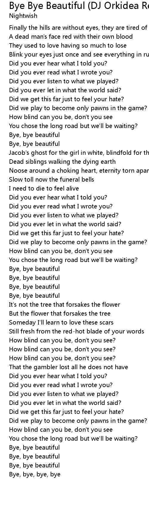 Bye Bye Beautiful (DJ Orkidea Remix) - DJ Orkidea Remix Lyrics