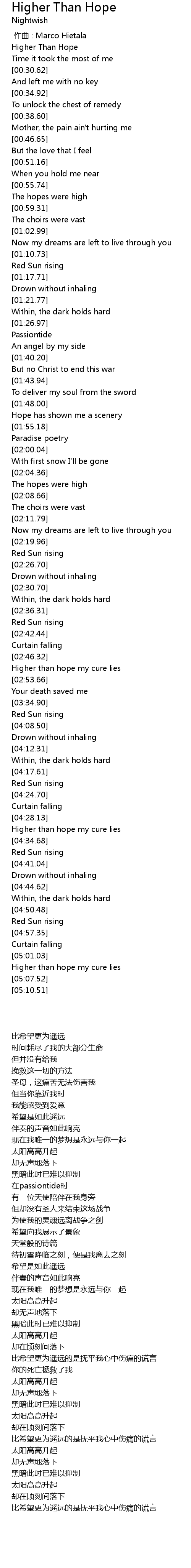 | [05:02.77] | Higher than hope my cure lies |