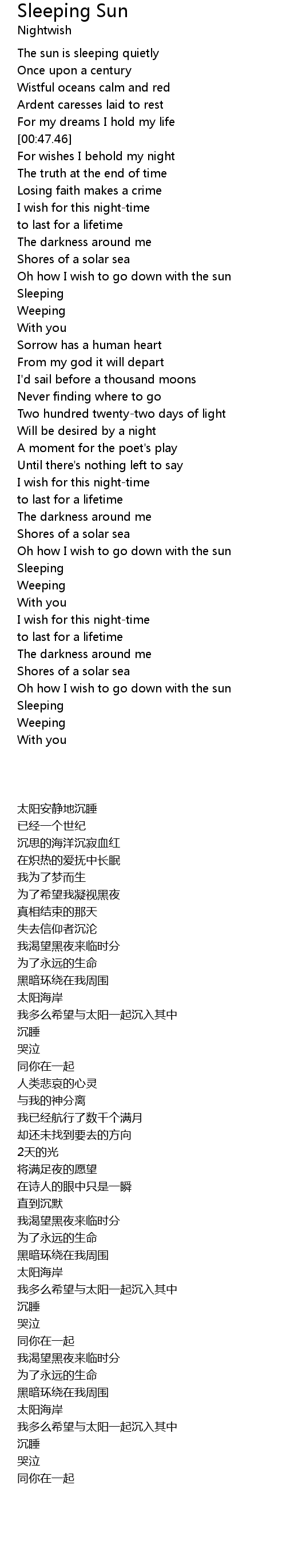| [02:32.62] | Oh how I wish to go down with the sun |