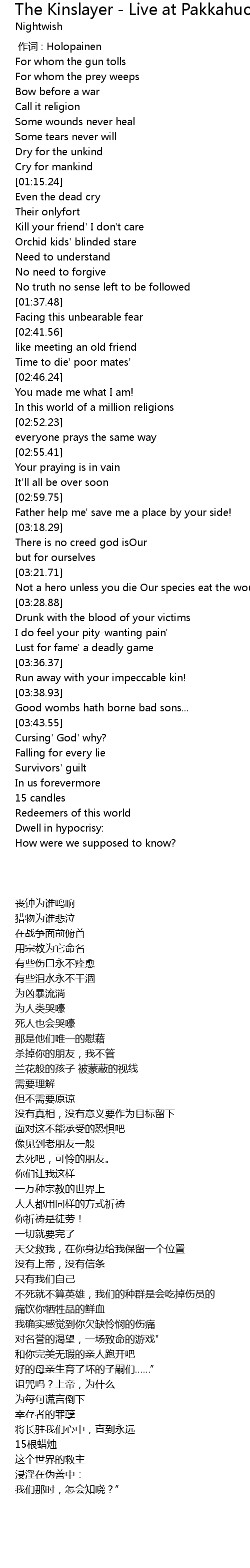 | [00:00.00] | 作词 : Holopainen |