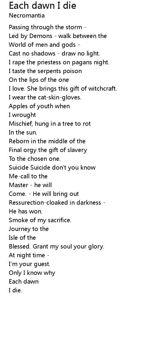 Each dawn I die Lyrics