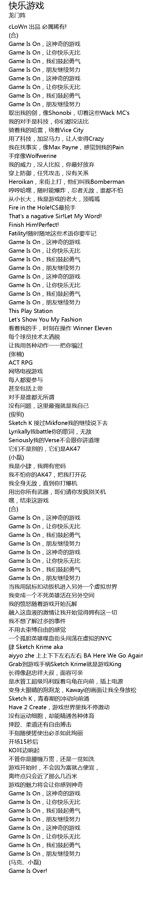 | [02:54.11] | Game Is On, ràng nǐ kuài lè wú bǐ |