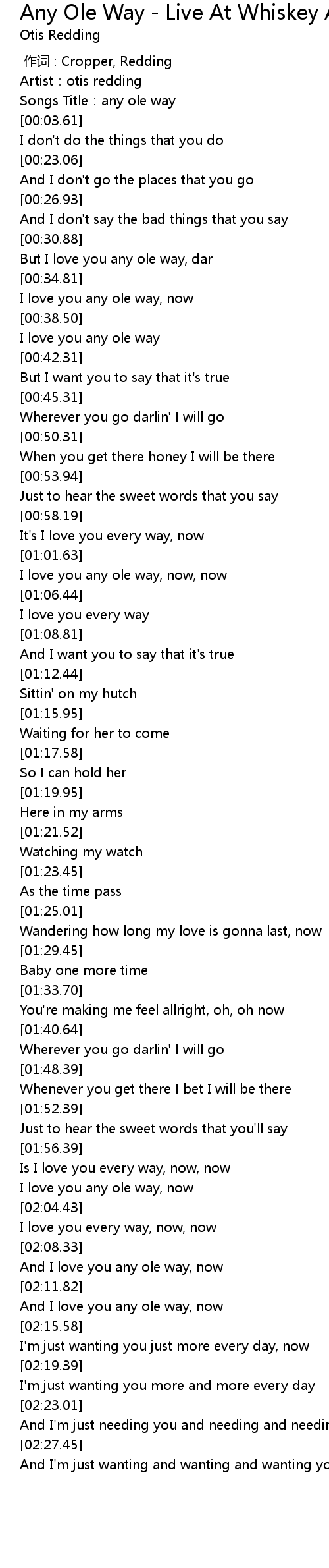 | Song | Any Ole Way - Live At Whiskey A Go Go 10th April 1966 Set 1 |