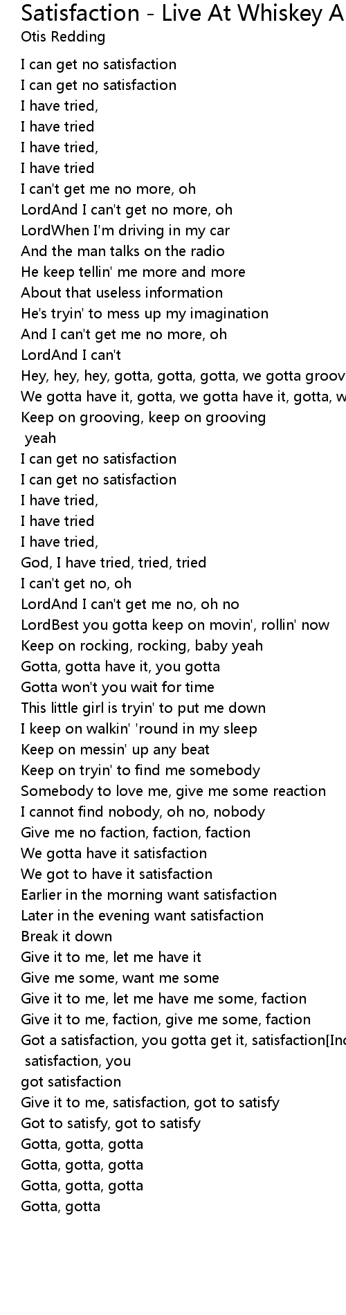 Got a satisfaction, you gotta get it, satisfaction[Incomprehensible] satisfaction, you gotta get it, satisfaction[Incomprehensible] satisfaction, you got satisfaction