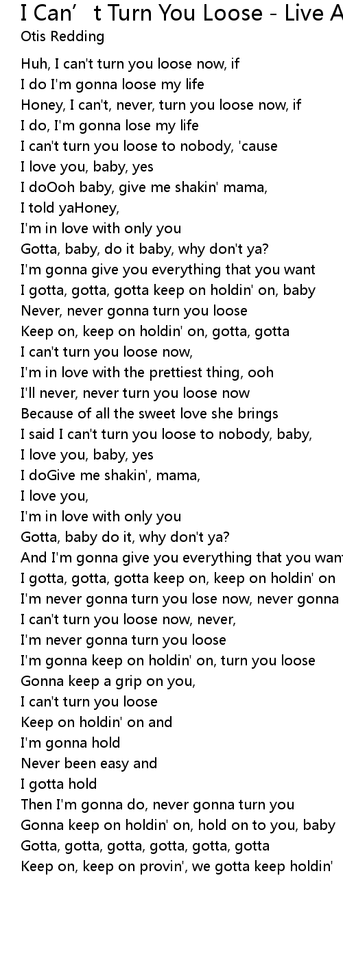 I'm gonna keep on holdin' on, turn you loose