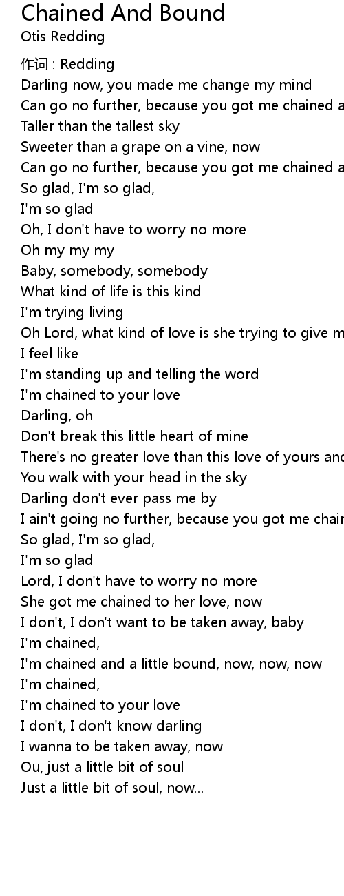| I ain't going no further, because you got me chained and bound, oh now | |