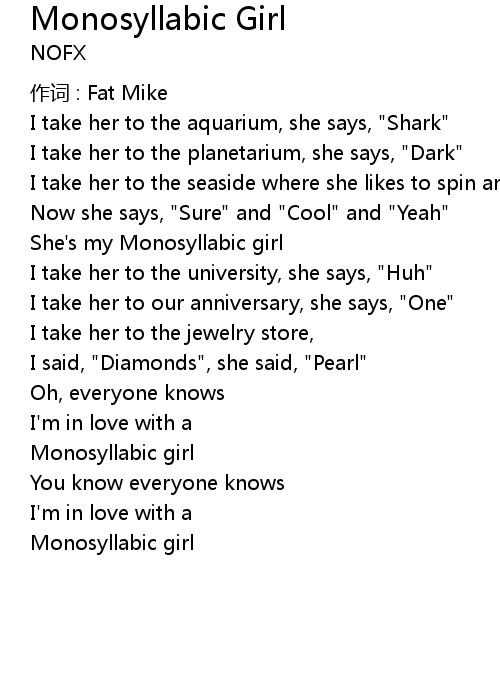 | She' s my Monosyllabic girl | |