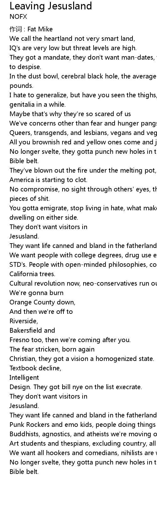 | Buddhists, agnostics, and atheists we' re moving out of jesusland. | |