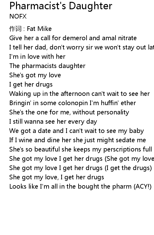 | Song | Pharmacist's Daughter |