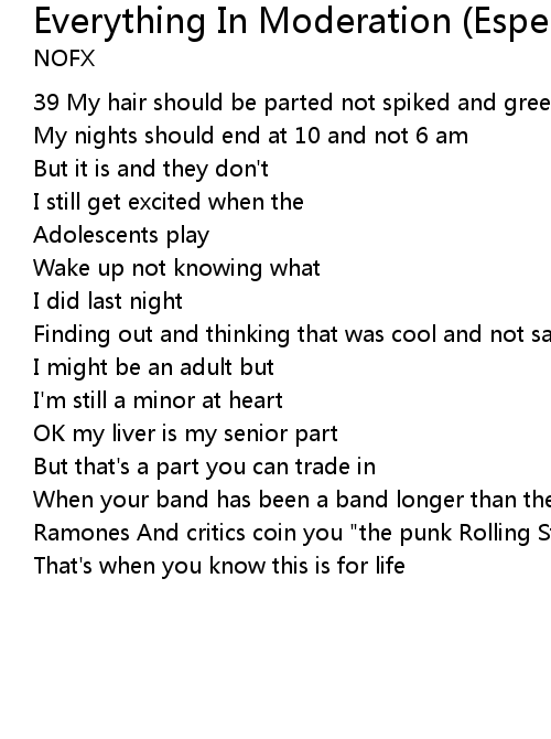 Song Everything In Moderation (Especially Moderation)