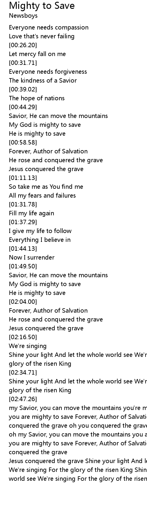 you are mighty to save Forever, Author of Salvation you rose and conquered the grave |