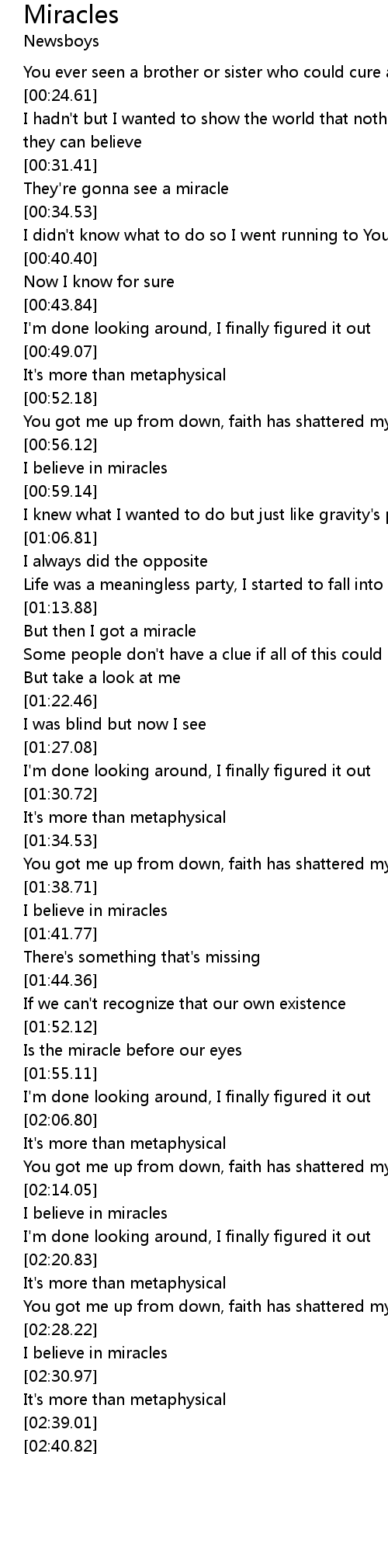But then I got a miracle |