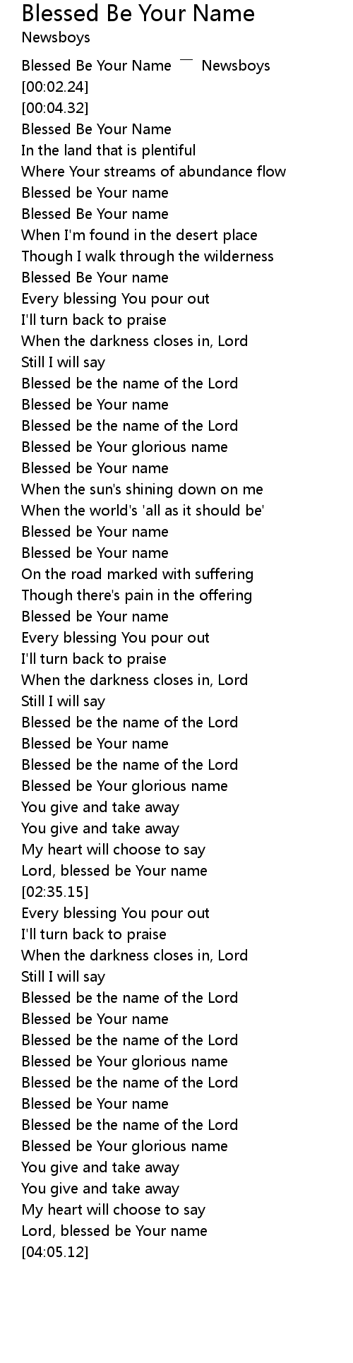| [00:00.27] | Blessed Be Your Name Newsboys |
