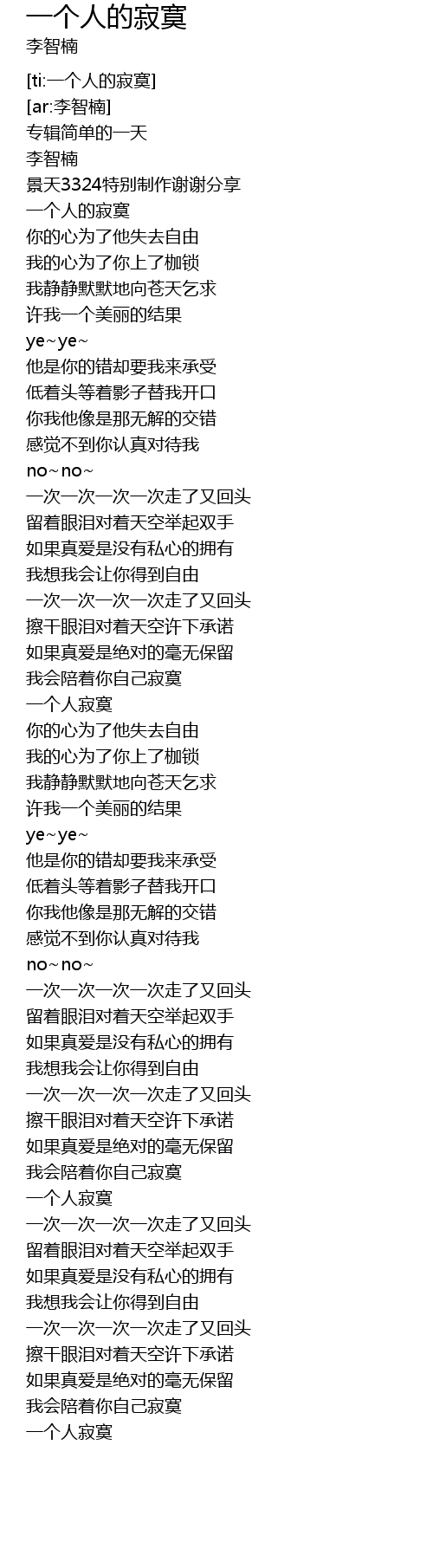 | [04:00.703] | 一个人寂寞 |