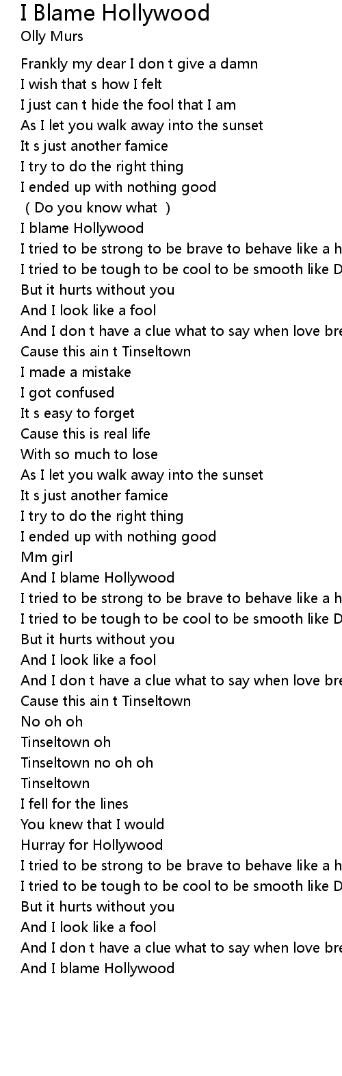 | [01:33.62] | And I blame Hollywood |