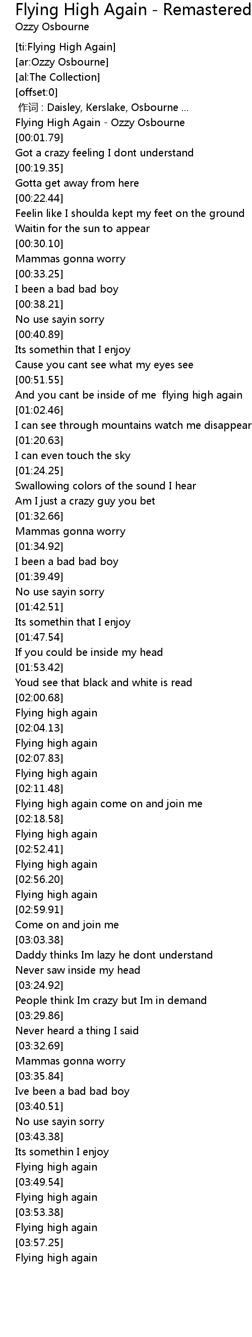 | [00:00.53] | Flying High Again Ozzy Osbourne |