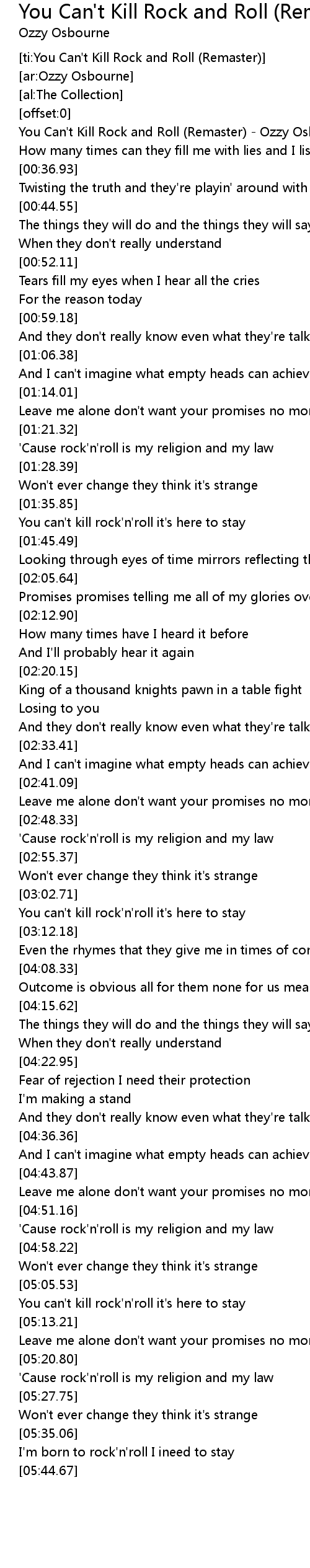 [ti:You Can't Kill Rock and Roll (Remaster)] |