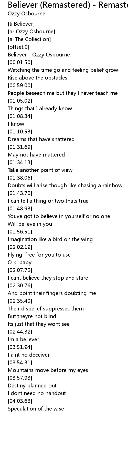 Believer - Ozzy Osbourne |
