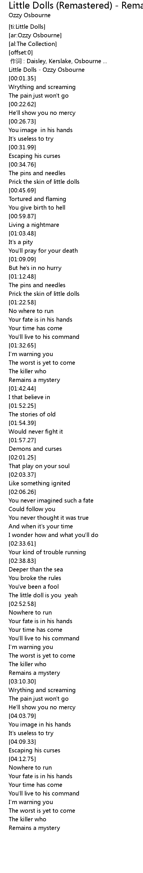 | [00:00.28] | Little Dolls - Ozzy Osbourne |