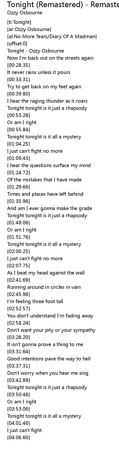 [al:No More Tears/Diary Of A Madman] |