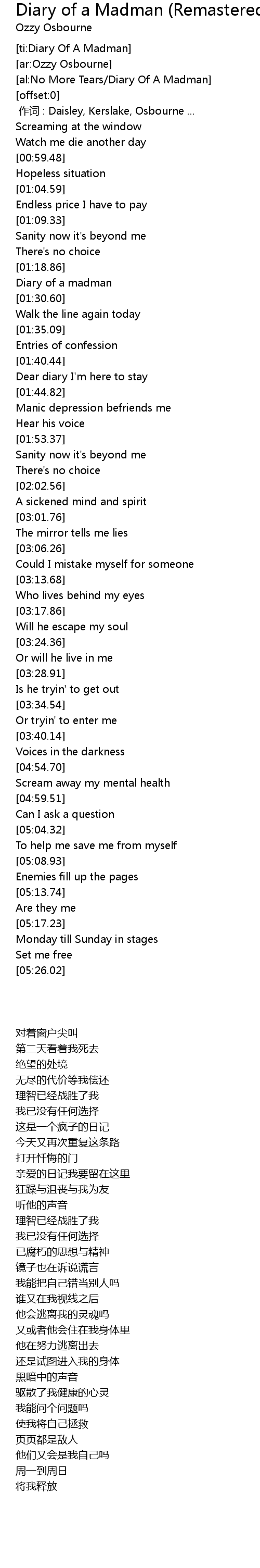 | [00:00.00] | 作词 : Daisley, Kerslake, Osbourne ... |