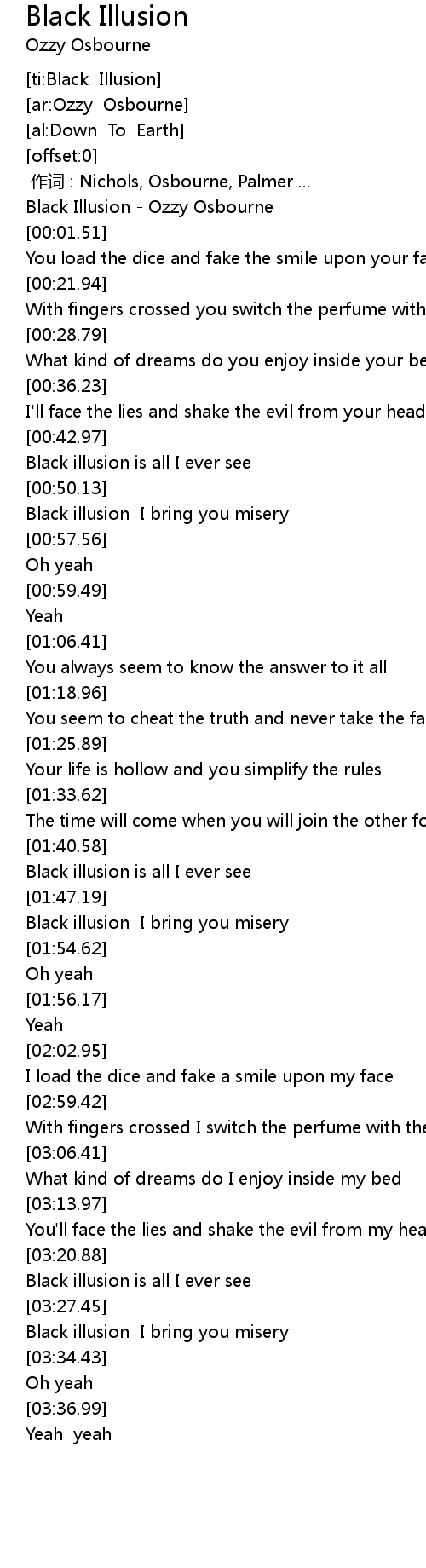 | [00:00.45] | Black Illusion Ozzy Osbourne |