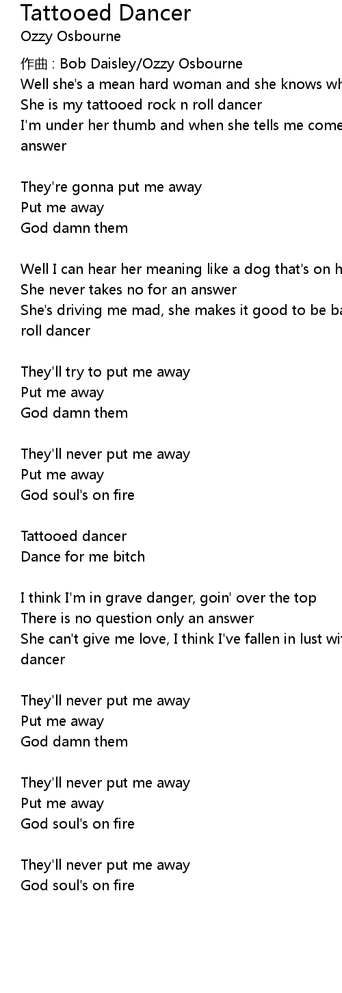 | She' s driving me mad, she makes it good to be bad, my little tattooed rock n roll dancer | |