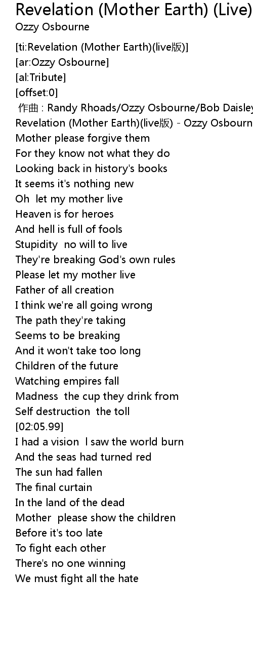| [00:00.79] | Revelation Mother Earth live bǎn Ozzy Osbourne |
