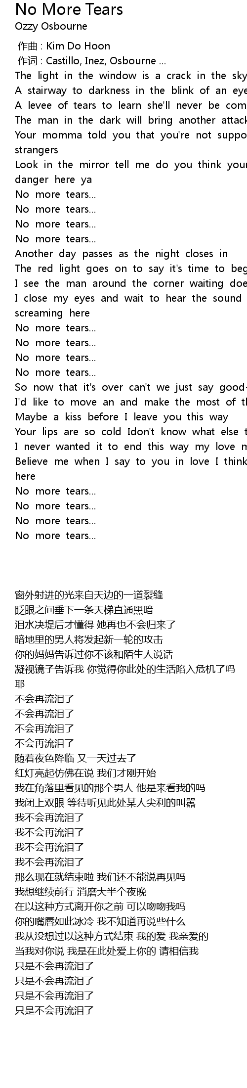 | [00:01.00] | 作词 : Castillo, Inez, Osbourne ... |