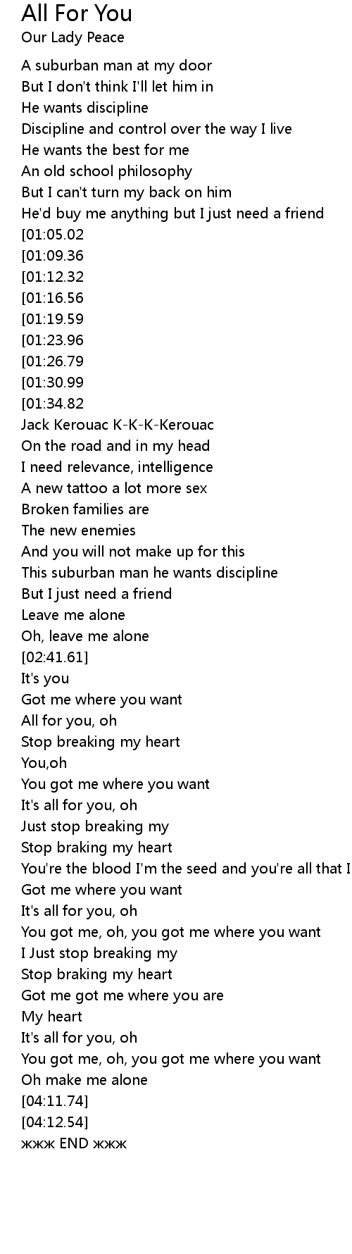 | [02:10.12][01:12.32] | It' s all for you, oh |