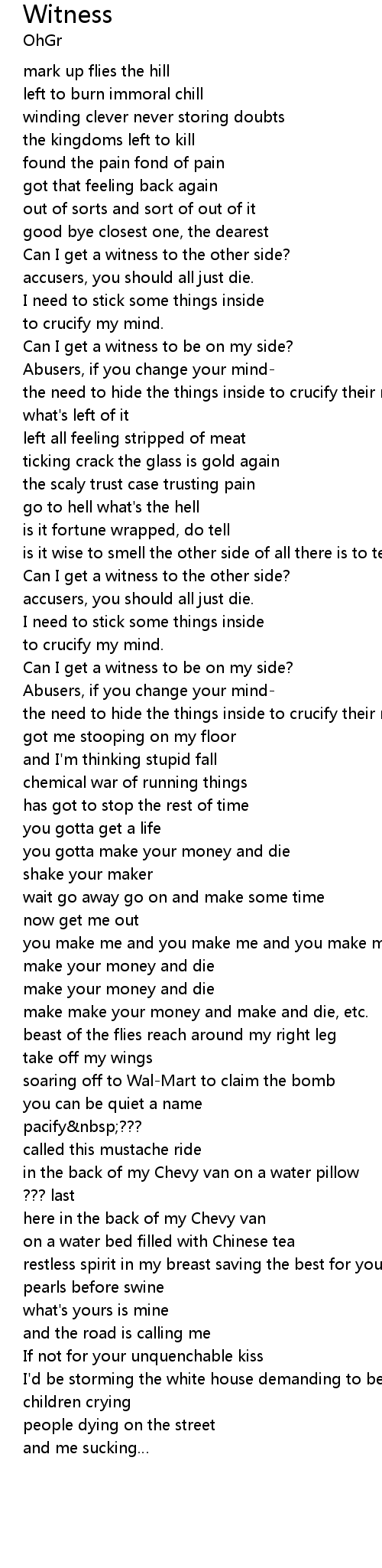 | Can I get a witness to be on my side? | |