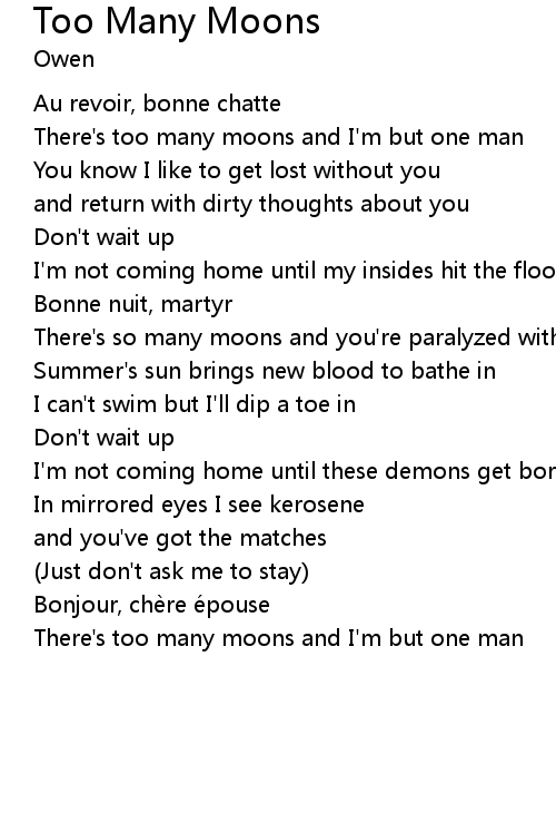 | There' s too many moons and I' m but one man |