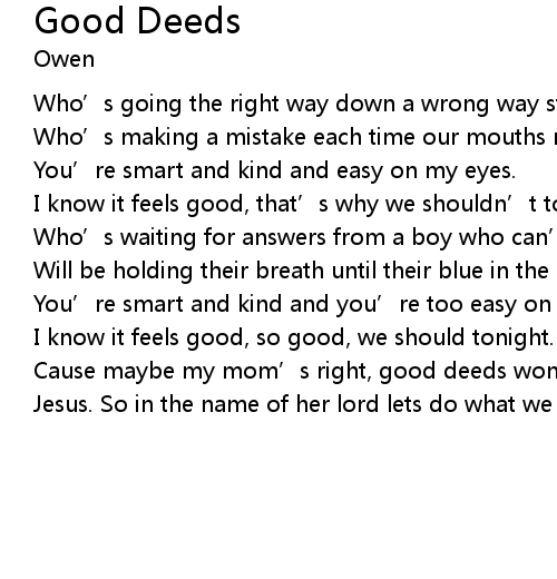 | Song | Good Deeds |