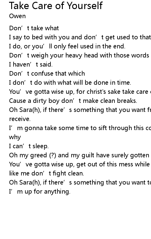 | You' ve gotta wise up, for christ' s sake take care of yourself. | |
