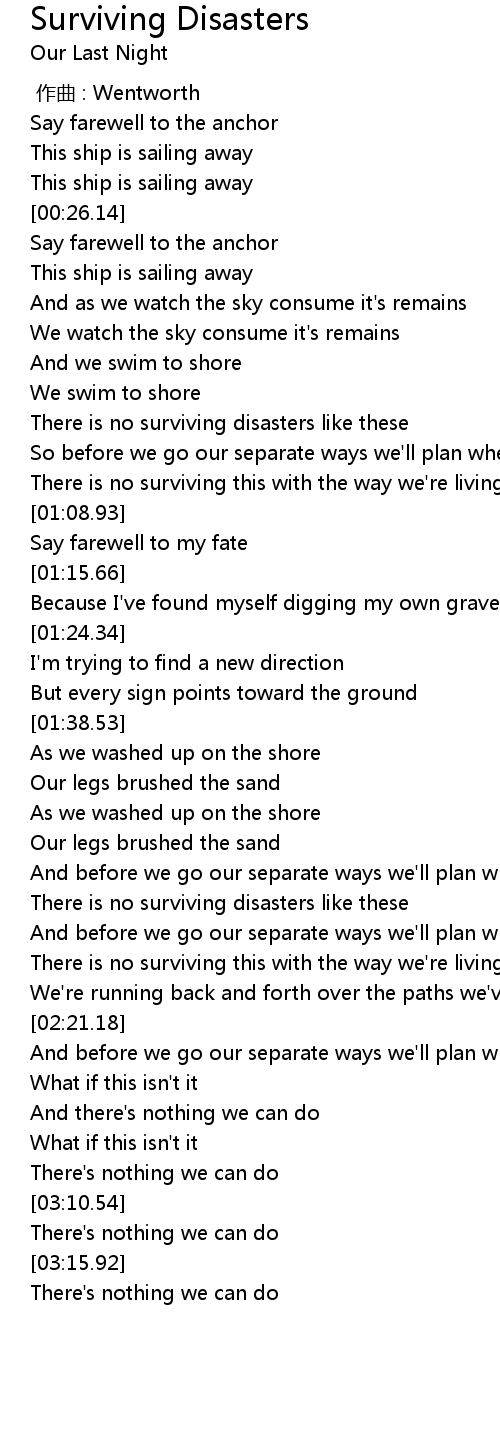 | [00:48.71] | There is no surviving disasters like these |