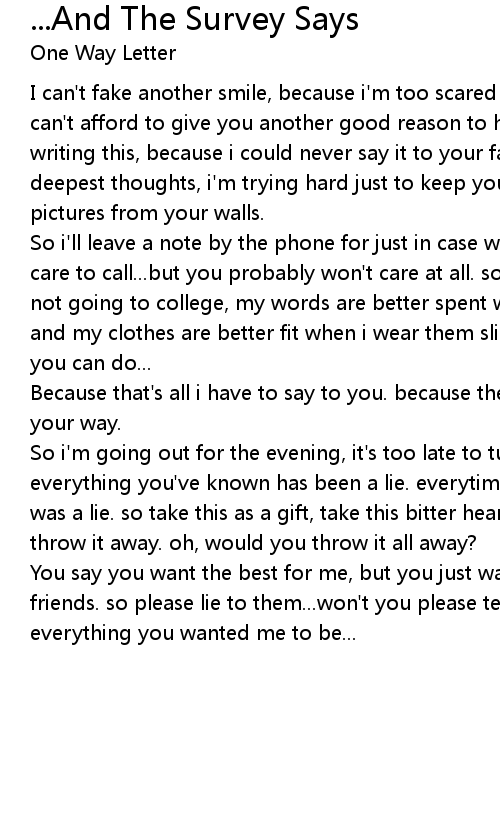 So i'm going out for the evening, it's too late to turn back now, when everything you've known has been a lie. everytime you said you were sorry, it was a lie. so take this as a gift, take this bitter heart you make for me and throw it away. oh, would you throw it all away? |