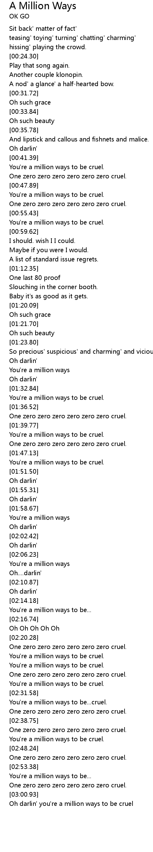 | [02:57.94] | One zero zero zero zero zero zero cruel. |