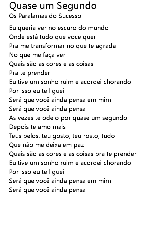 | Song | Quase um Segundo |