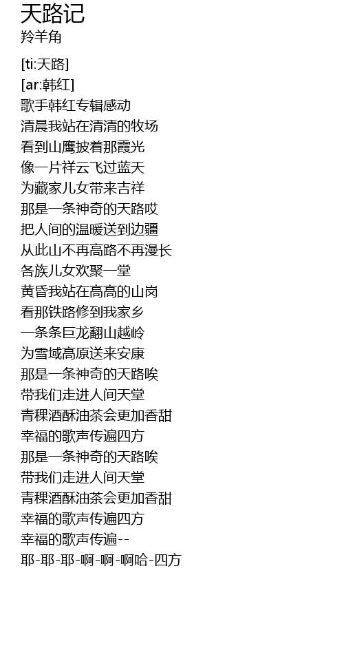 | [03:43.372] | 那是一条神奇的天路唉 |