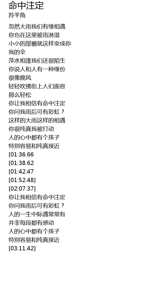 | [00:23.04] | 忽然大雨我们有缘相遇 |
